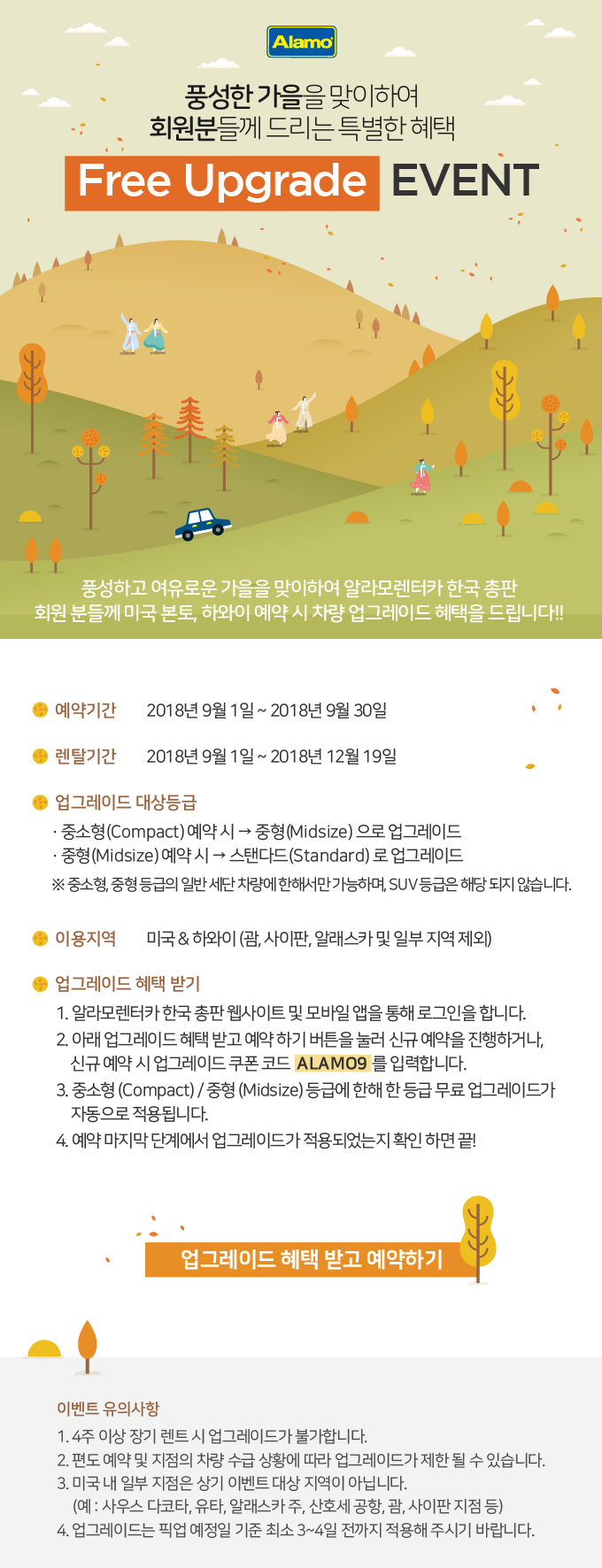 가을맞이, 알라모렌터카 회원 Free Upgrade Event!!
